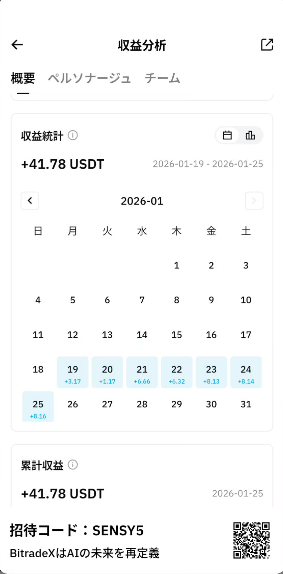 月利15%を目標としているこのシステムですが、今週は特に後半にかけて利益が伸び、1週間の累計で+41.78 USDTという結果になりました。