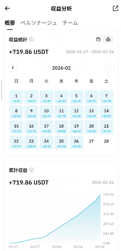 - 2月26日(本日):+43.94 USDT(約6,591円)