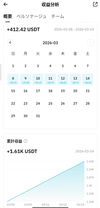 • 3月14日(本日):+59.34 USDT(約8,901円)