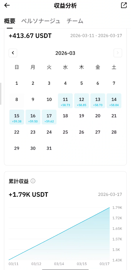 - 3月17日(本日):+59.13 USDT(約8,869円)