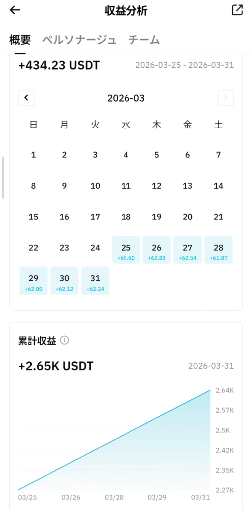 - 3月31日(本日):+62.24 USDT(約9,336円)