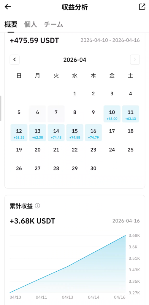 - 4月16日(本日):+74.79 USDT(約11,218円)